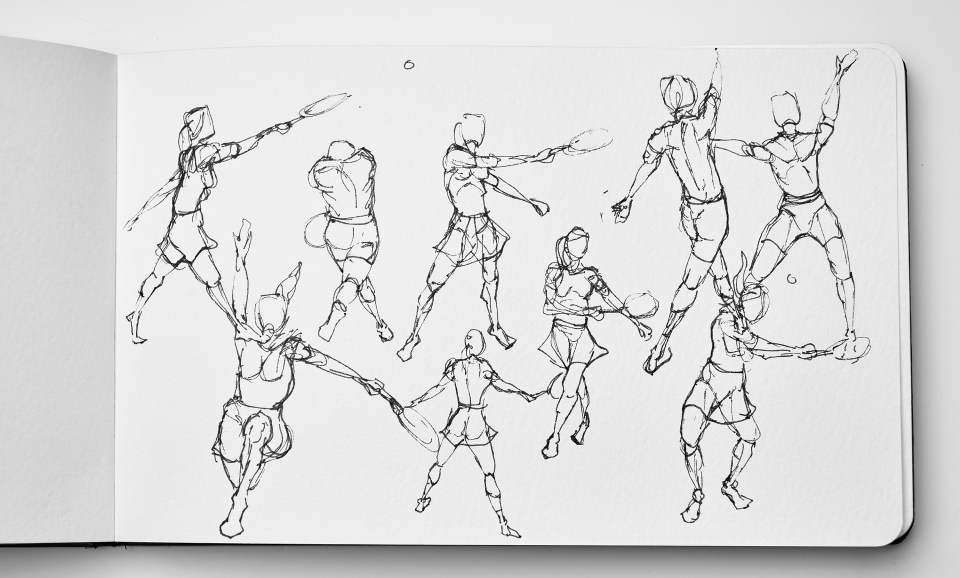 Tennis, dessin sur carnet, 21 x 13 cm