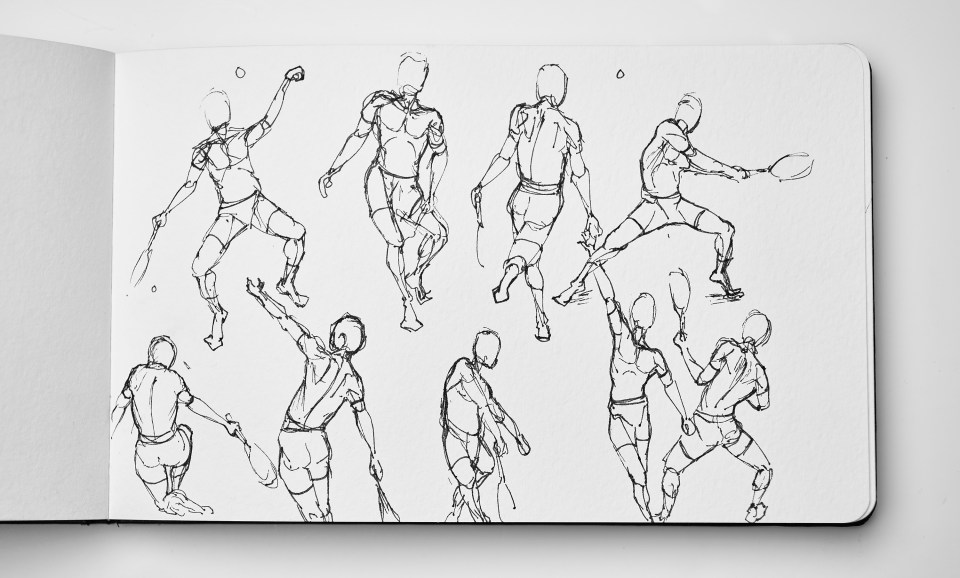 Tennis, dessin sur carnet, 21 x 13 cm