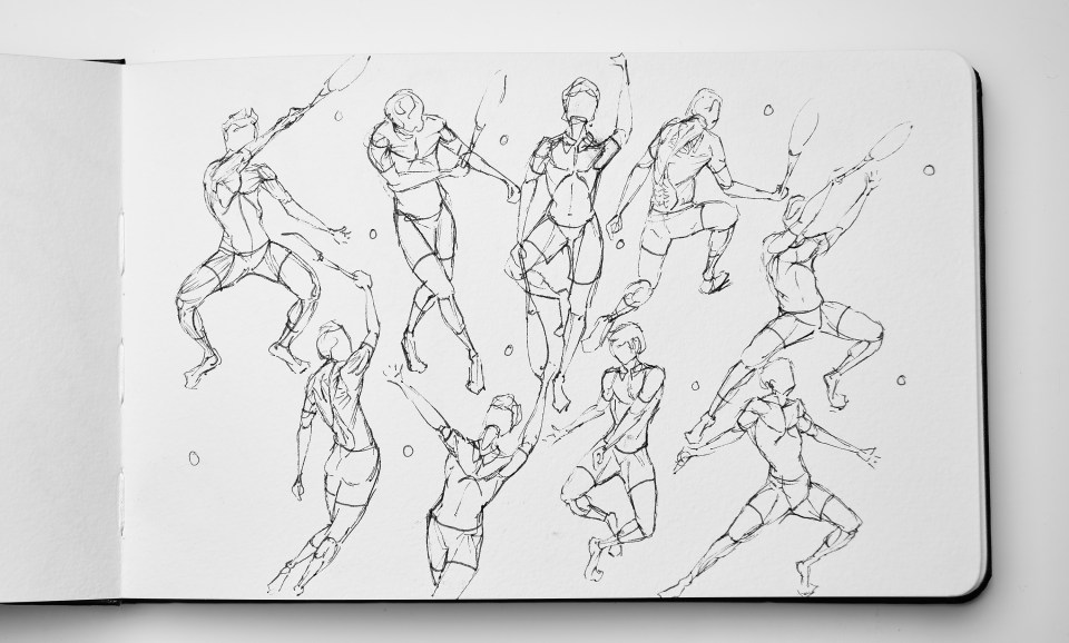 Tennis, dessin sur carnet, 21 x 13 cm