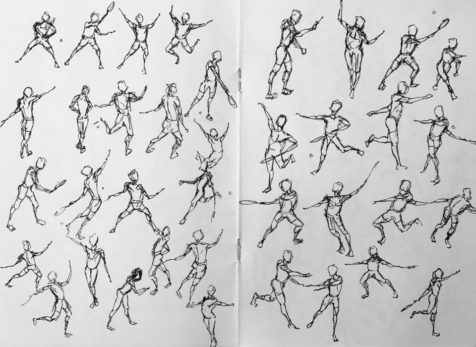 Tennis IV, stylo sur papier, 30 x 21 cm