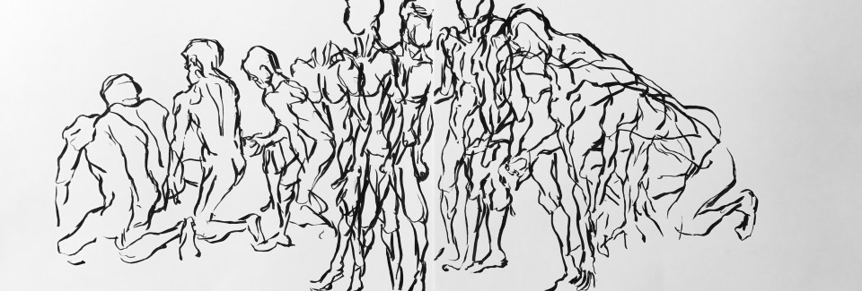 Encre du chine sur papier, pose en mouvement